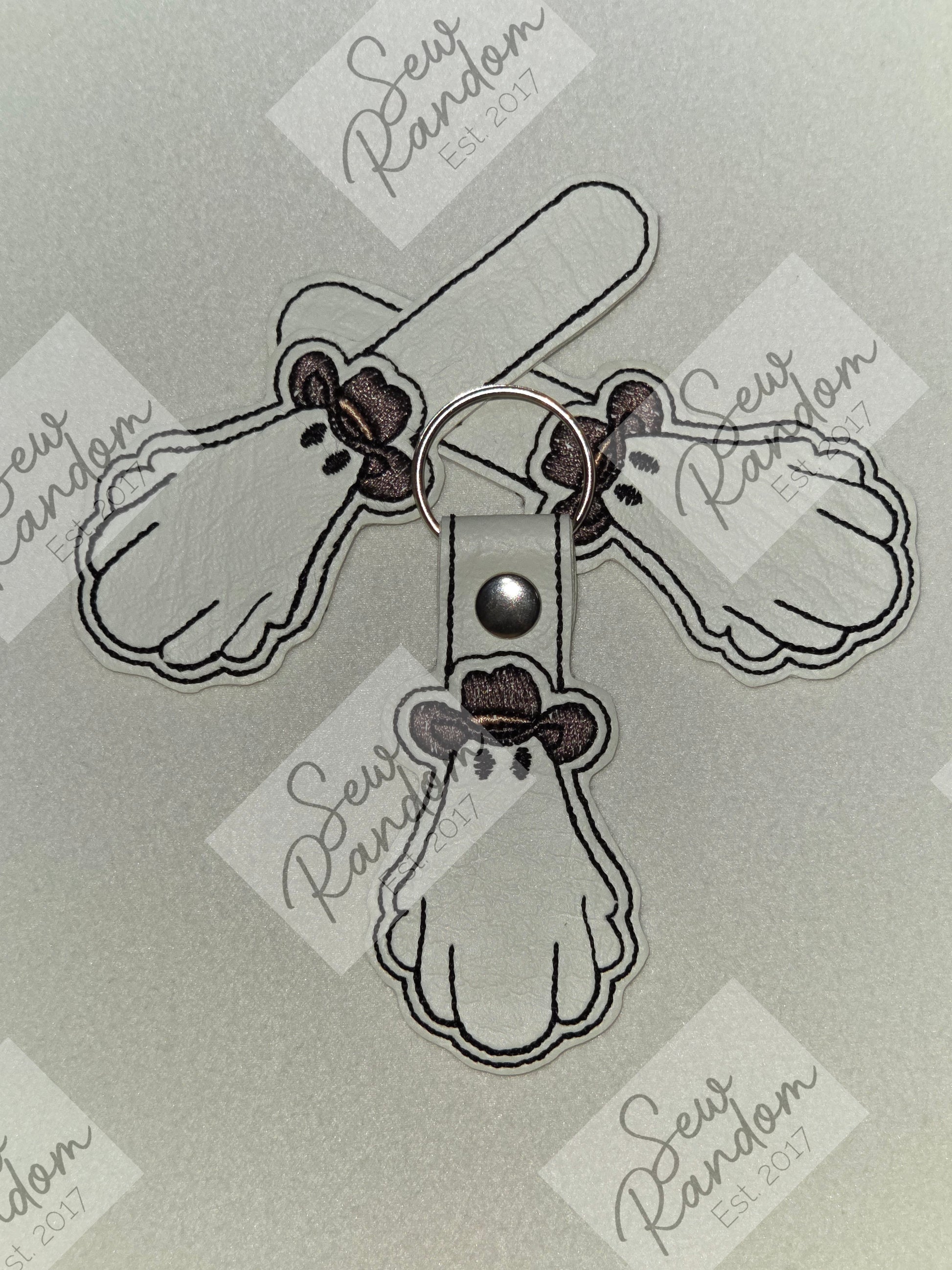 Faux leather keyring with an embroidered design and silver coloured ring and rivet