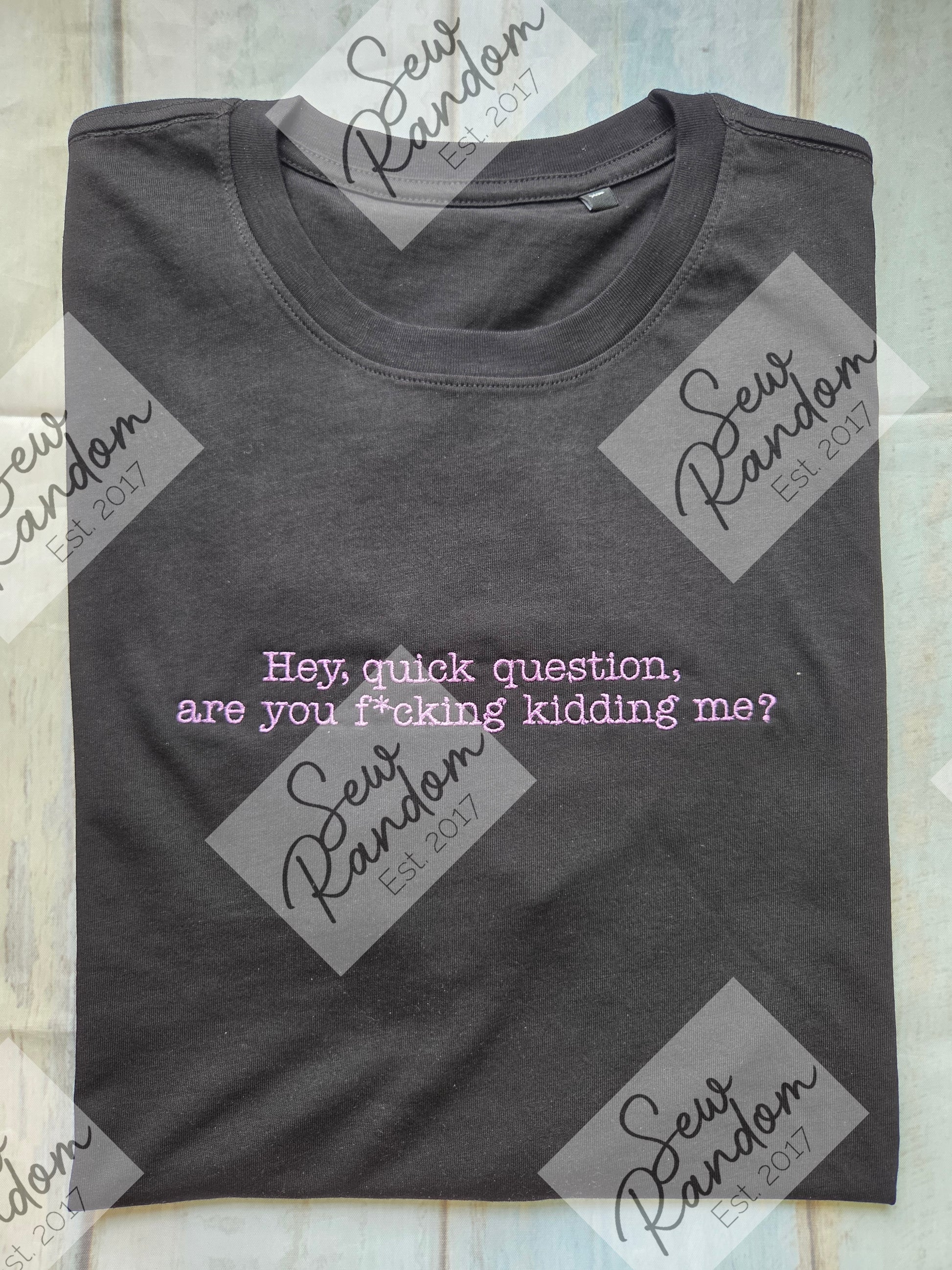 Organic cotton T shirt with an embroidered design on the front. Colours may differ depending on screens and lighting.